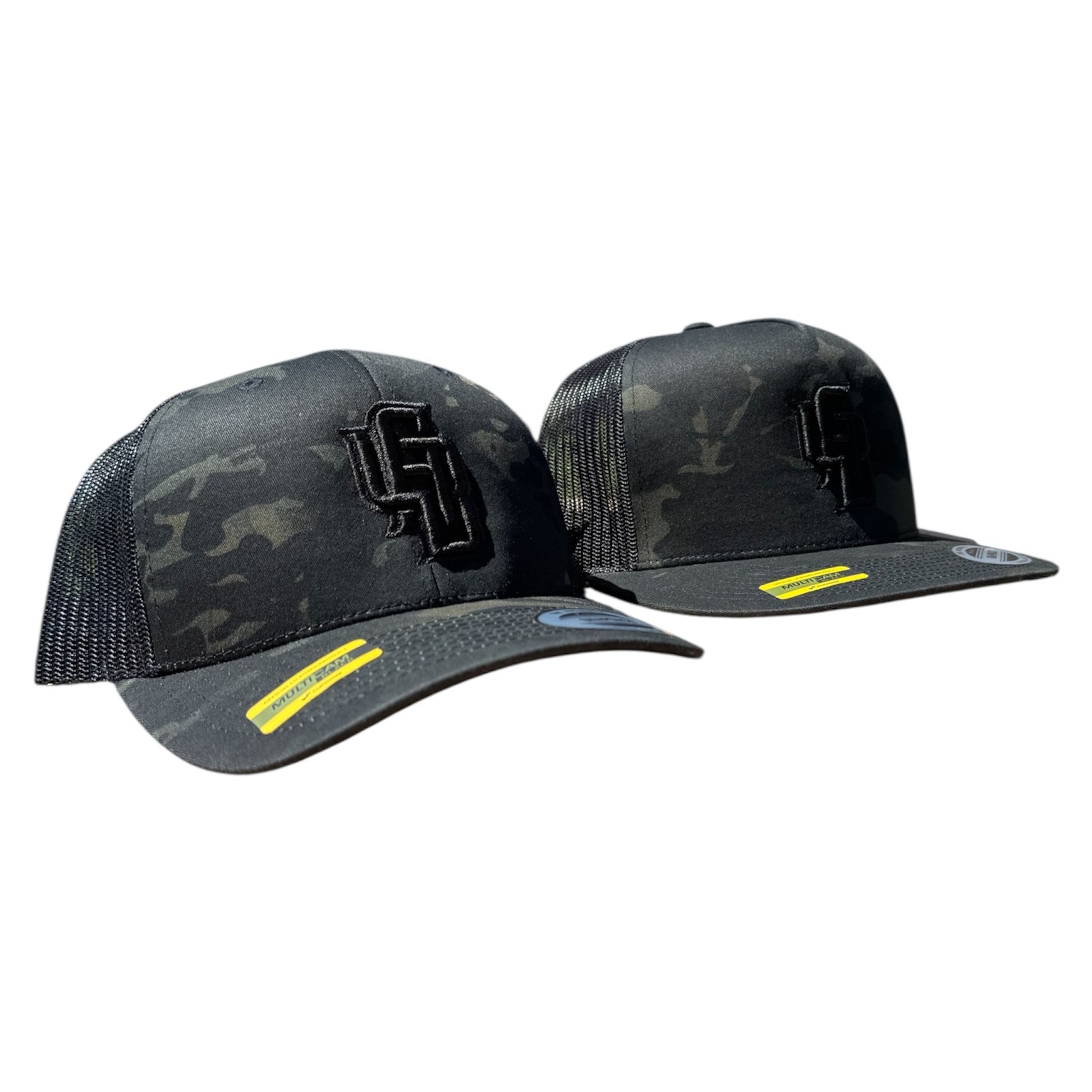For those who move loud but keep it low-key. The Amp Stealth Trucker features a black Multicam pattern and tonal black on black embroidery keeping it subtle, sharp, and built to stand out without saying a word.